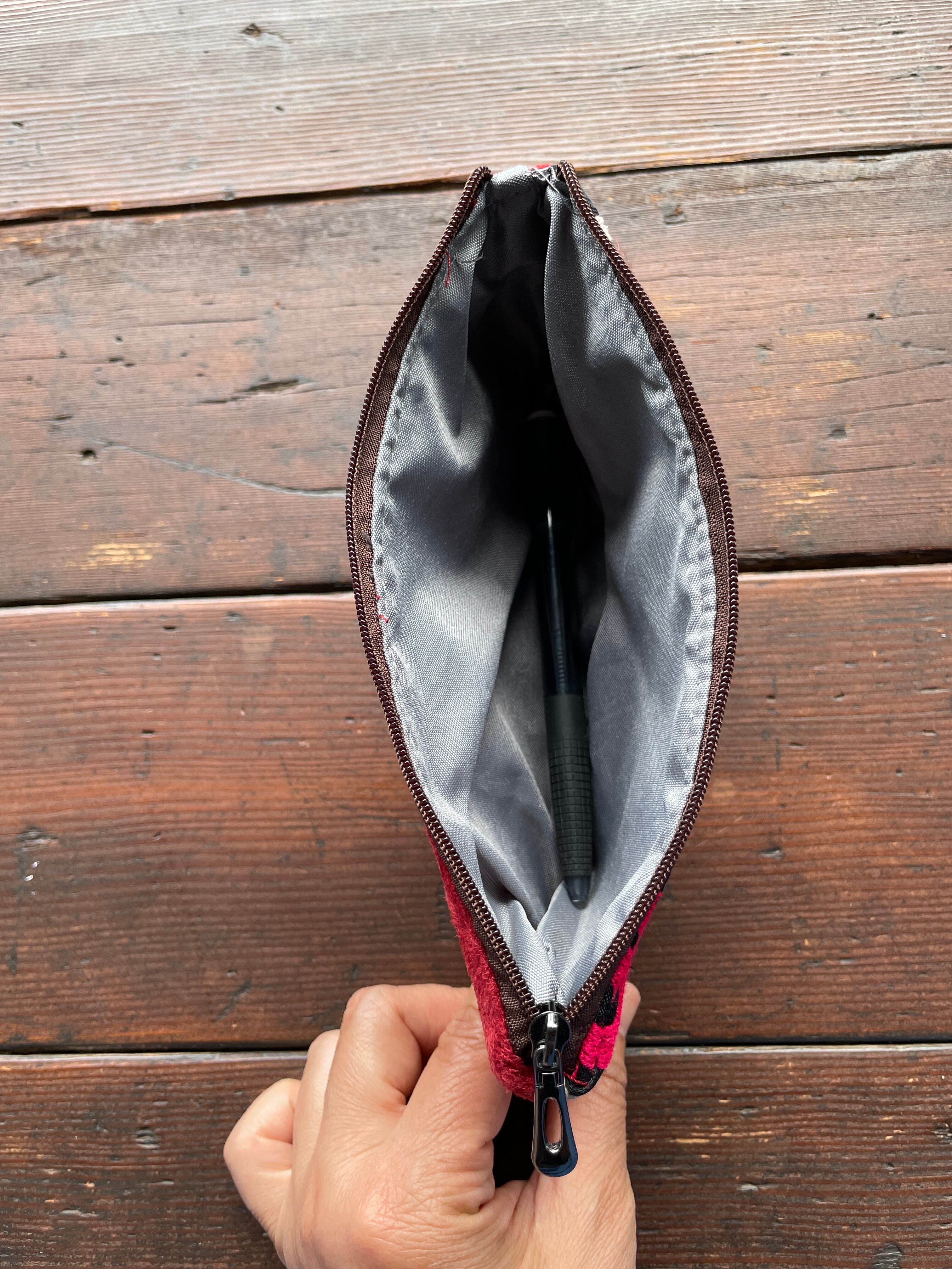 カザフ刺繍のペンケースは、濃いピンク色が目を引くアイテムです。
